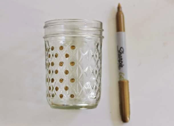 Is there anything you can’t do with a mason jar? This all-around vessel gets just a bit snazzier with some shimmery Sharpie polka dots. It couldn’t be easier—freehand dots any which way you wish, then use your new jar as a rustic vase, cup, or desktop organizer.