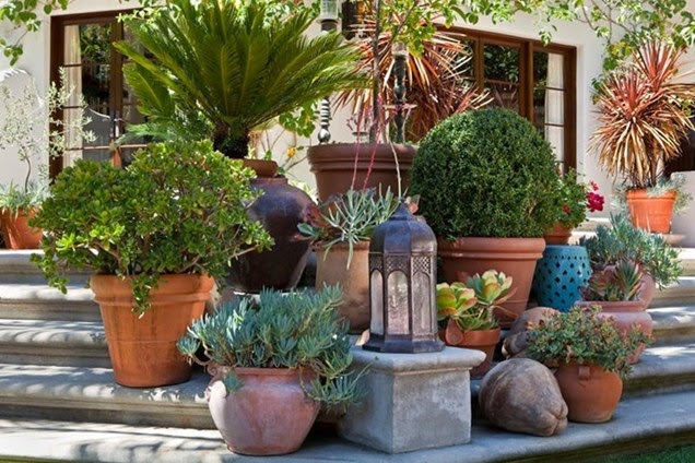 Create an instant garden ~ Container gardens add a welcoming feel and colorful appeal to any home exterior — quickly and affordably. You can buy ready-made containers from garden centers or create your own with your favorite plants. For most landscapes, a staggered, asymmetrical arrangement works best to create a dynamic setting.