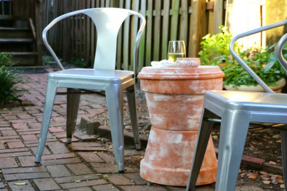 DIY Outdoor Terra Cotta Storage Side Table, from 17 Apart.
