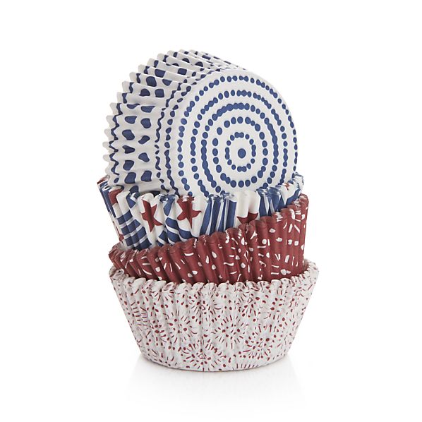 Set of 100 Americana Cupcake Papers – Hooray for the red, white and blue. Patriotic papers in four fun designs are ideal for baking cupcakes and muffins and handing out party favors and snacks.