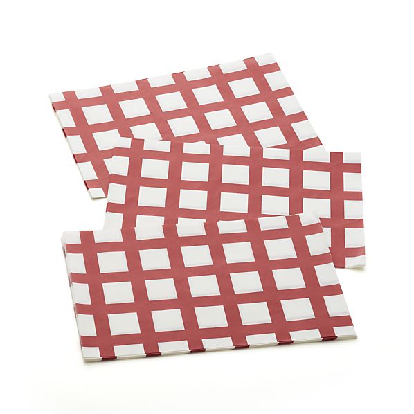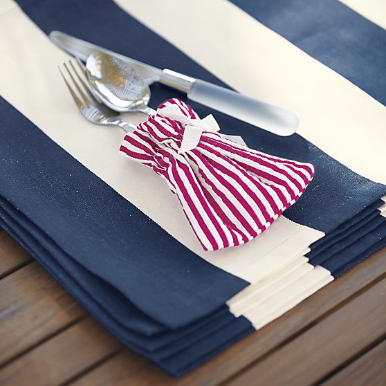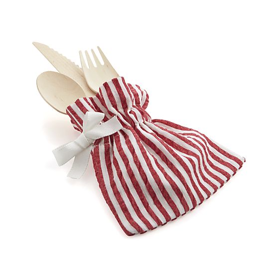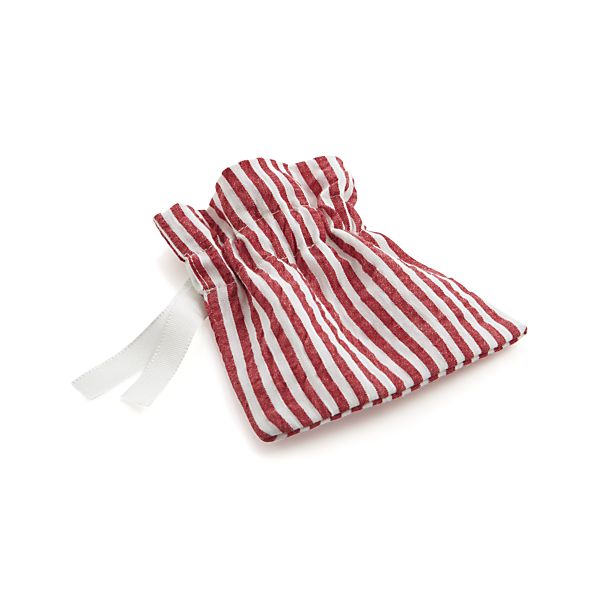 Seersucker Red Flatware-Goodie Pouch – A fresh new presentation idea in classic red-and-white seersucker nestles flatware, goodies, gift cards and more. Ribbon drawstring keeps contents inside.