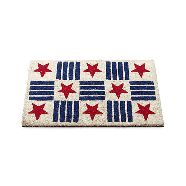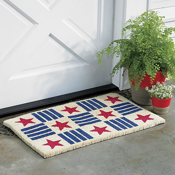 4th of July Doormat – Blue stripes and red stars from an all-American, graphic grid on our durable coir doormat. Natural fibers are woven and bonded to a rubber mat, resulting in a highly absorbent mat that traps dirt and moisture from footwear.