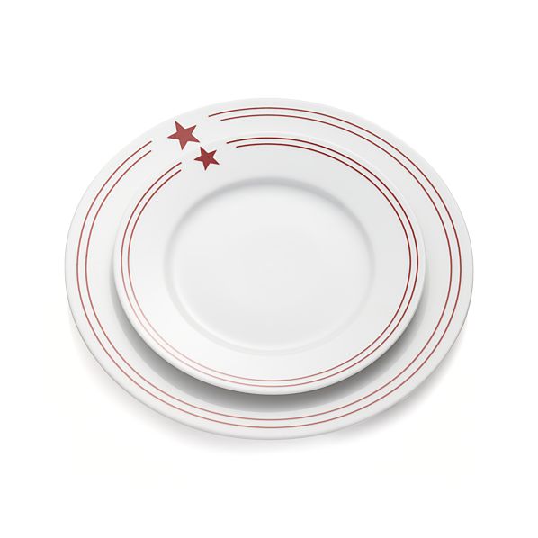 Red Star Plates – With a touch of delightful diner styling, this broad-rimmed porcelain plate with a double-banded red rim and star icon sets an all-American table for everyday dining and patriotic occasions.