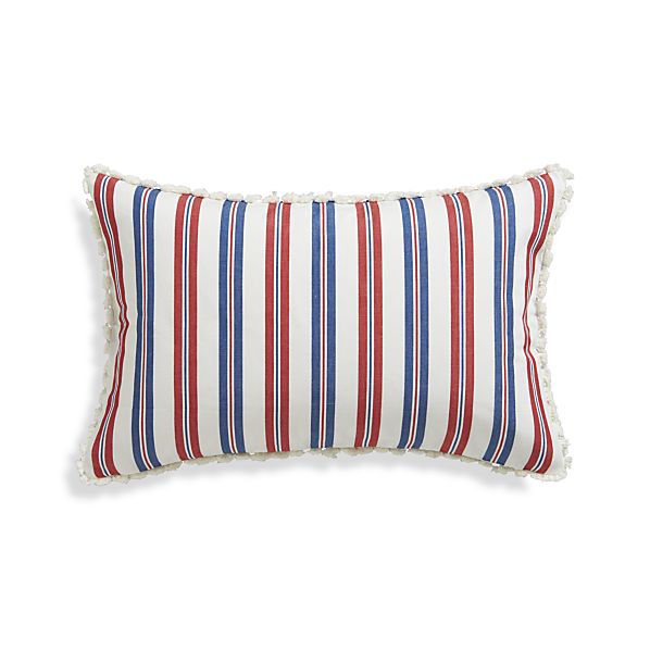 Liberty 20″x13″ Pillow – Red, white and blue stripe patriot in this great summertime pillow, edged in white fringe for a little bit of vintage.