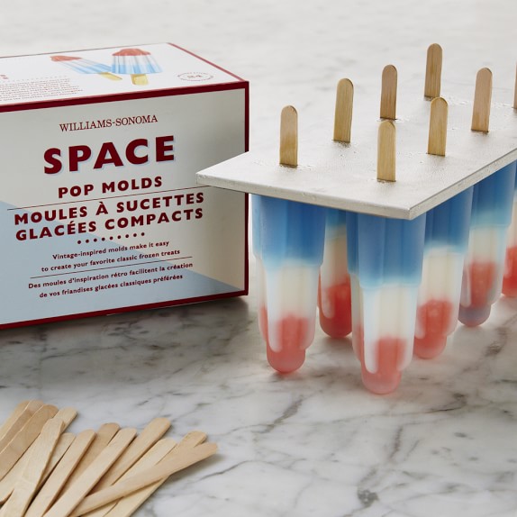 Classic Space Pop Molds – Intergalactic fun starts with our retro space pop molds. Just fill them with your favorite ingredients, from fresh juices and fruit purees to ice cream and yogurt. Create your own flavor combinations, or try layering different colors and textures.