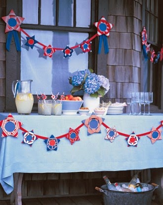 Red, White, and Blue Ribbon Stars ~ Use ribbons to create these patriotic stars of the party: garlands and festive straws that incorporate the colors and elements of the American flag.
