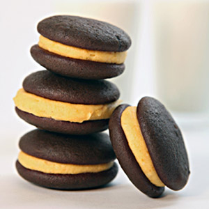These soft cocoa cookies sandwiched with creamy pumpkin filling are a welcome holiday treat. Ingredients: