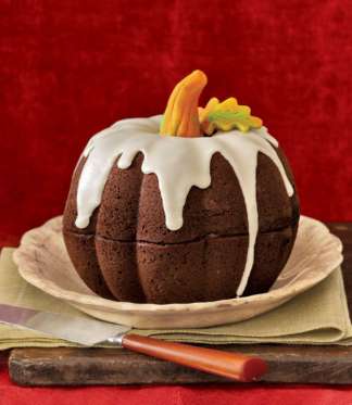 With its vanilla-sugar icing and marzipan stem, this cake is sure to sparkle everyone’s socks off! The secret to its perfect form? A fluted, dome-shaped pan. The pumpkin shape is actually two dome cakes, fitted together or you can try the Great Pumpkin Pan, from Williams-Sonoma. Add a candy stem and leaf after icing.