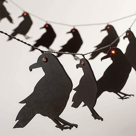 Incorporate Ravens Into Your Decor ~ We would like to think that ravens are the official birds of haunted houses. What’s even better than ravens? Possessed red-eyed ravens that hang over your room. These string lights ($35) will be the perfect addition to your decor.