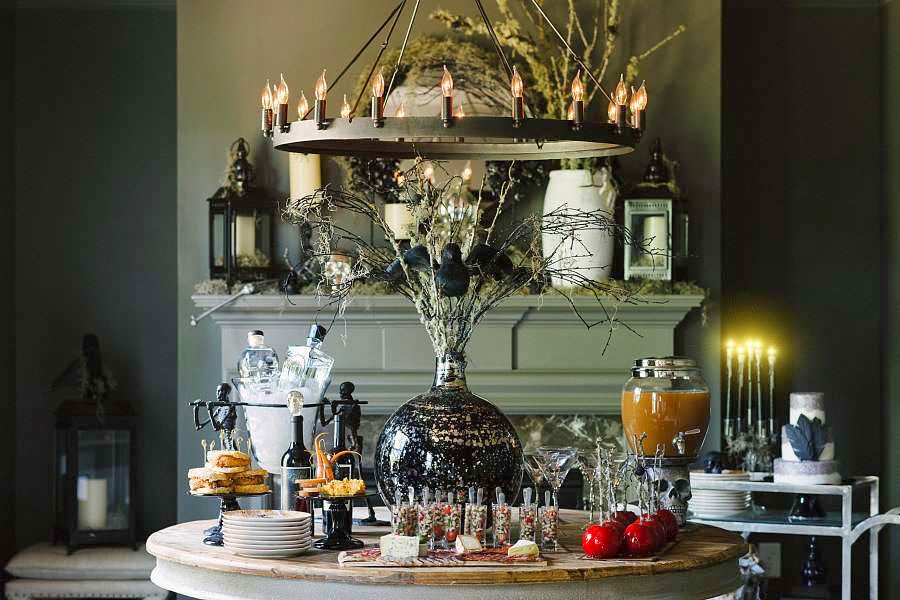 Paint Accessories Black ~ Spray-paint anything and everything in your home black for a dark, sinister vibe. Just make sure you don’t mind the permanent change! You can start small with leaves and vases to add to your spread.
