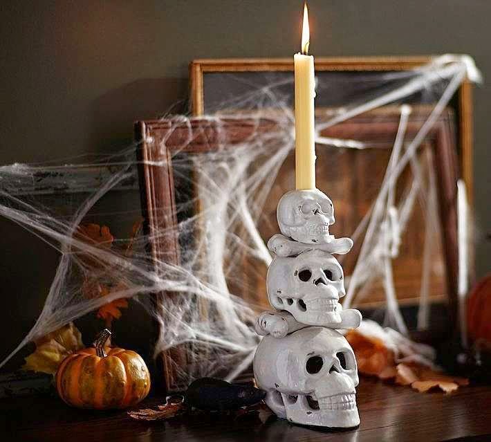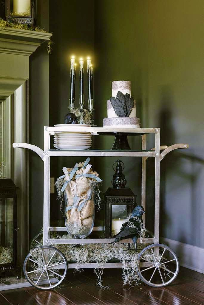 Use Lots of Candles ~ Turn off all of your lights and fill your home will tons of tall, skinny candles. The shadows that the dim light will cast give off a spooky vibe. Photo by Rebecca Hansen Weddings via Style Me Pretty