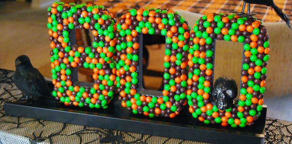 This candy-coated sign won’t last forever, but is an inventive way to highlight Halloween’s scary and tasty sides.