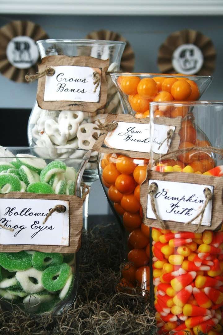 Fill apothecary jars with piles of candy corn or gumballs for containers that bring the Halloween spirit to any bare table.