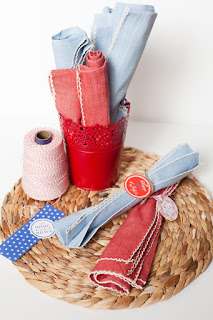 Keep this holiday’s iconic color palette chic by sticking to a simple color palette of primarily white and blue and displaying items like linen napkins in vintage containers.