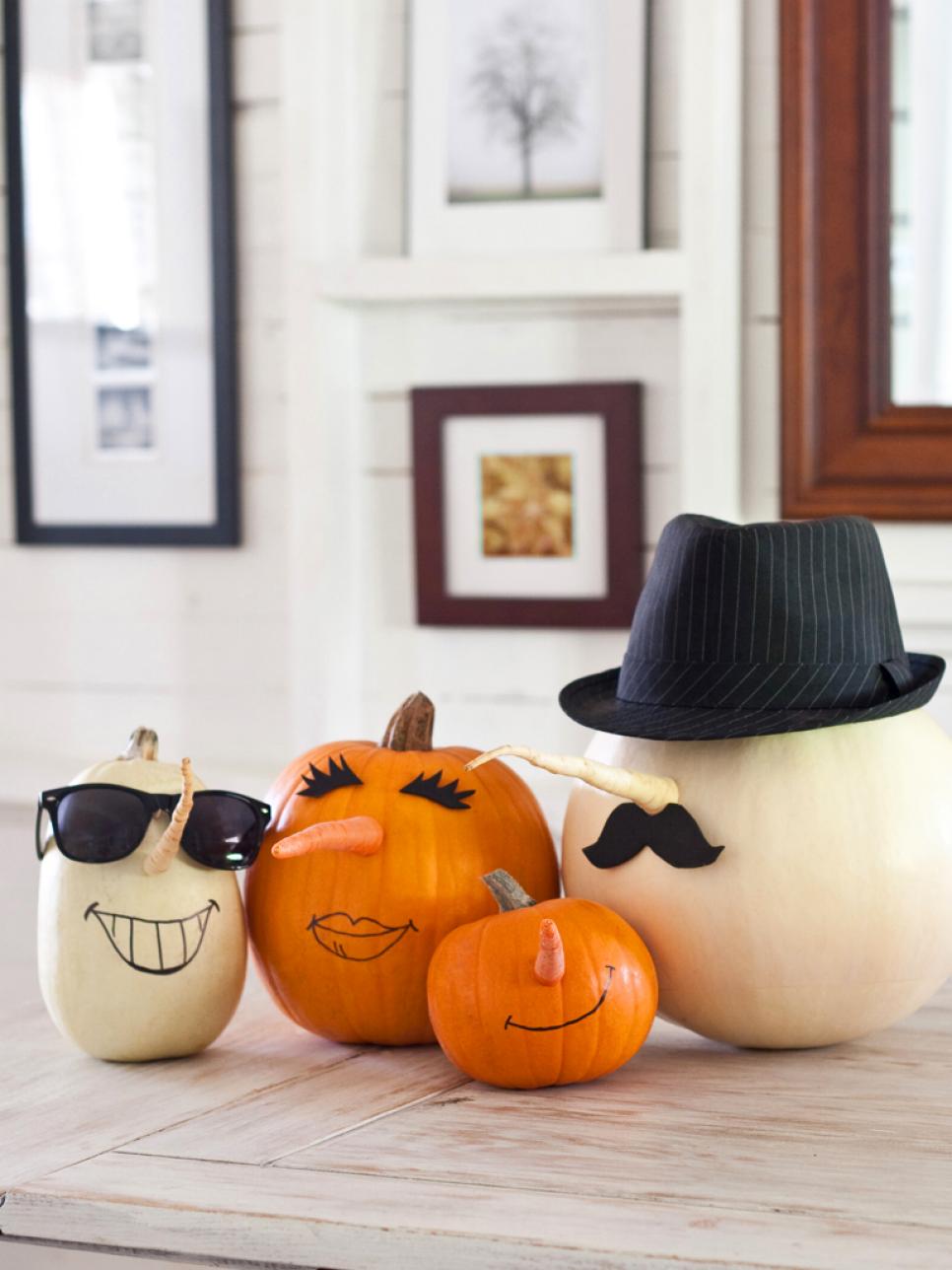 Re-Create your family using signature characteristics on pumpkins and/or gourds that resemble each family member.
