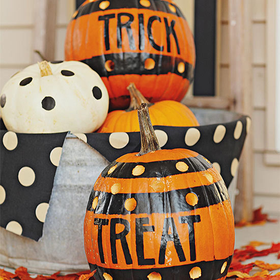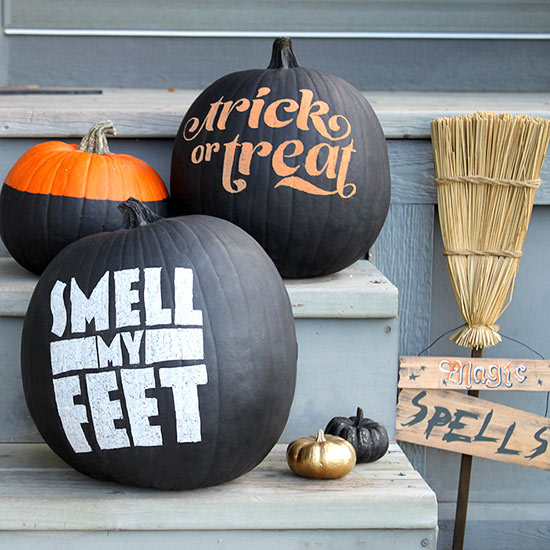 Quotes are a huge trend this year! Pumpkins can even get in on the trend…to get the look of these wordy Halloween pumpkins, paint your gourds with chalkboard paint and trace on your words using stencils. Remove the stencils, then fill in the letters with traditional white or colored chalk.