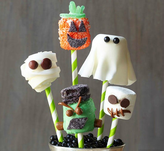 For a quick and spooky Halloween treat, use marshmallows and fondant to form tasty ghouls. Tint the fondant and use candies and pretzels to decorate each ghoul to ghastly perfection.