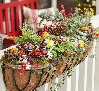 Add seasonal greenery to your outdoor planters for a festive and bright entrance with