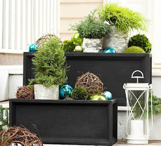 Ornaments aren’t just for the tree! Give your outdoor planters a holiday makeover with a few round ornaments, birch branches, and grapevine balls {use plastic ornaments to avoid breakage}.