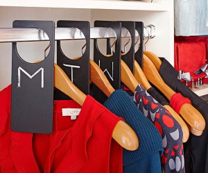 Make morning routines easier (especially with children) by organizing a week’s worth of outfits. Place hanging tags on a closet bar, each marked with a day of the week. Place your planned outfits with the designated tag and you’ll save time each morning when deciding what to wear.