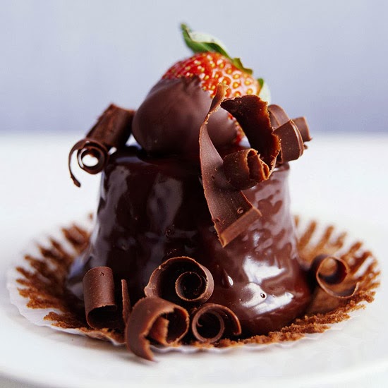 The romance of chocolate-covered strawberries takes a delightfully elegant turn in this luscious Valentine’s Day dessert recipe. Upside-down cupcakes are smothered in rich ganache and topped with fresh strawberries.