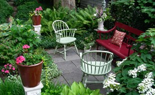 For added depth and interest, consider mixing a few reds and blacks with your greens. “Black Pearl” coral bells stand out in the shade with dark purple leaves. Ornamental cabbage, Japanese maples, purple smoke bush, and even edibles like Swiss chard will give you plenty of red.