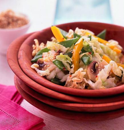 Cabbage has been a staple Irish flavor for years. This Savoy Cabbage Salad offers a fresh twist on this reliable side dish. We added the noodles uncooked. They soften some while chilling, but still add crunch.