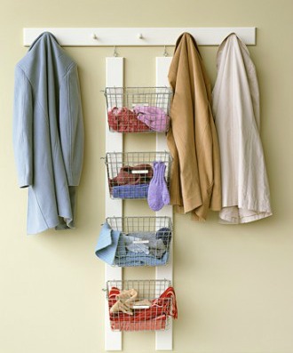 With umbrellas, hats, and sunglasses near the door, making the morning bus on time will be much easier without those last-minute searches. Keep the entryway organized despite school year traffic with these crafty metallic bins for all members of the family.