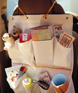 With the start of the school year, children will begin their after-school activities and consequently spend more time in the carpool. A canvas shoe bag is just right for keeping toys tidy and easy to reach in the car.