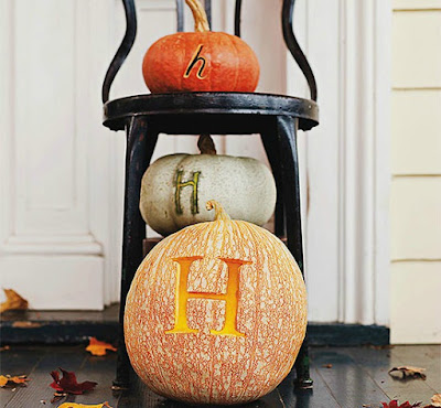 Welcome guests to your home with these decorative monogrammed pumpkins that are simply elegant. To make these cool pumpkins, print letters (either your initials or one for each member of your family) in your favorite font. Transfer the designs to pumpkins and carve, either cutting all the way through the pumpkins or gouging out the top layer.