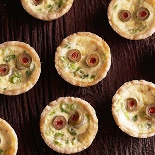 Staring red eyes give these zombie-face mini quiches an undead aura. The bite-size appeal and tasty filling will have Halloween guests gobbling them up anyway, which is exactly what you want for Halloween finger foods! Pimiento-stuffed olive slices serve as the hypnotic eyes, but pearl onions hidden beneath keep the eyes from sinking into the rich egg-and-cheese filling. Recipe