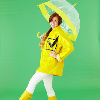 Print the check mark pattern, below. On the back of a duct tape sheet, trace around the reversed check mark; cut out. Cut out four equal-length strips about 1/2 inch wide from another duct tape sheet. Arrange in a square on a rain slicker.