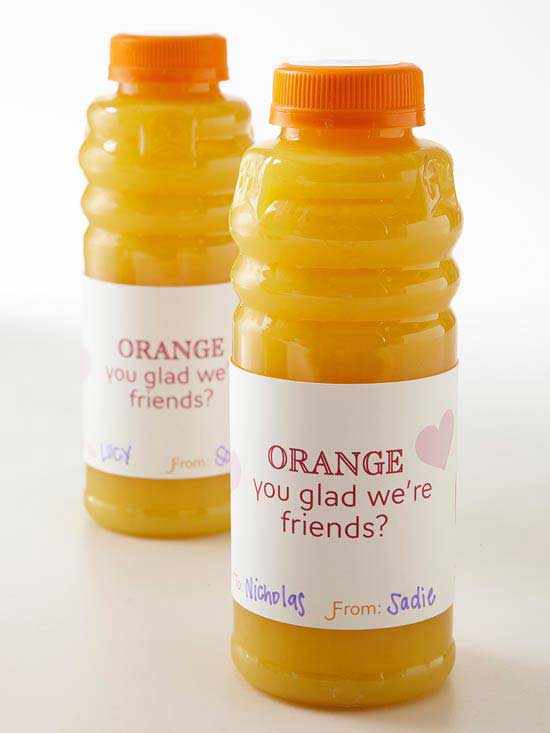 Supply your classmates or colleagues with something yummy to wash down all the candy. Wrap labels around a drink bottle, or use string to attach a gift tag around the top.