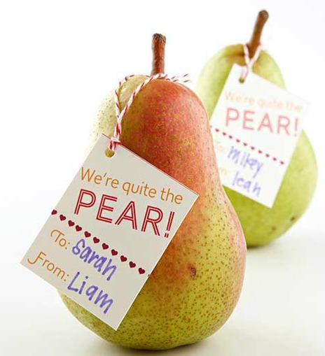 There’s a reason they call fruit “nature’s candy,” and sweet, mouth-watering pears are no exception. Punch a hole through a printed label, and use decorative string or ribbon to attach to the stem of the fruit.