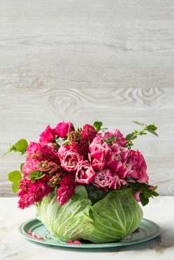 The perfect centerpiece for Mother’s Day or for spring parties. The cabbage is unexpected, but so easy. Instructions here.
