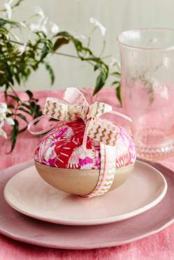 Jazz up table settings with a little paper mache magic. Use modge podge, paper, and ribbon to create these imaginative eggs. Instructions here.