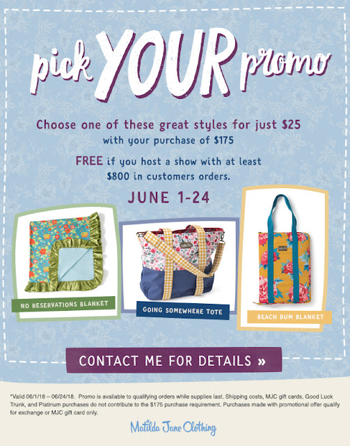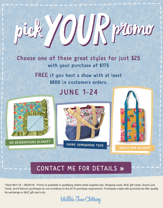 Matilda Jane June Promo is …… Posted on June 4, 2018 by dkteel Get your order in and take advantage of this awesome You Pick deal. Shop through this link. Share this: Share on X (Opens in new window) X Share on Facebook (Opens in new window) Facebook Like Loading... Related