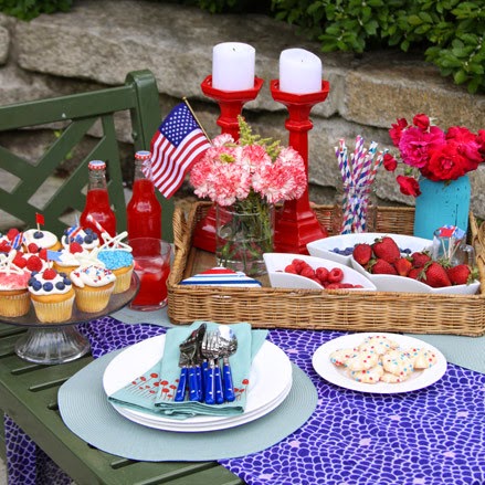 Begin decorating by scouring your house for red, white, and blue items. Don’t be picky on the shades of color because a little variation in hues will make your decor more dynamic. For a picture-perfect table, include these foolproof accessories: bottled soda, striped party straws, fresh flowers, and a flag, of course!