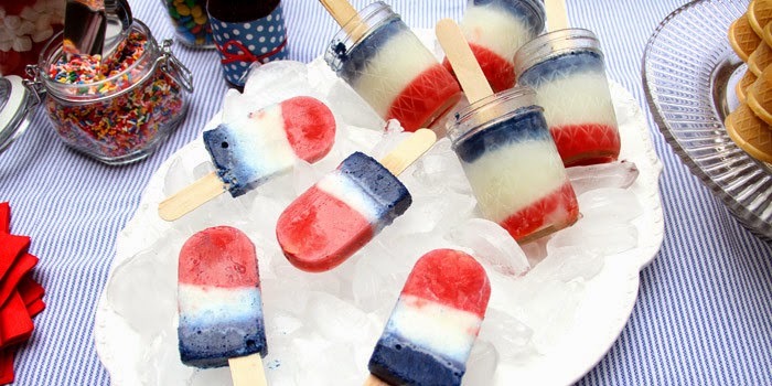 July always seemed especially hot, and also the most relaxed. By July, we get get used to the idea of relaxation, and school is still a ways off. And of course, there’s the 4th of July. As a child, I was always fascinated by Pepsi floats with my dad. If only I had known about these red, white, and blue berry sorbet floats! Layers of patriotic sorbet, ~red raspberry and white coconut, with the bluest blueberries (frozen, ideally)~ each sip is refreshing and light, and so, so festive. Make it a part of your 4th of July celebration, indulge in each sparkly sip and wiggle those toes in the cool grass. You’ll be cooling off in no time. Ingredients: 1 pint raspberry sorbet * 1 pint coconut sorbet * 1 pint blueberries (fresh or frozen) * Your favorite sparkling juice, soda, or wine. Instructions: Use an ice cream scoop to place a small scoop of raspberry sorbet in each glass. Drop in some blueberries, followed by a small scoop of coconut sorbet. Layer with more blueberries and one final scoop of raspberry sorbet. Pour in your favorite sparkling beverage. Serve immediately. Notes ~ Sparkling juices and sodas work well for kids of all ages. But if you’re hosting an elegant dinner celebration, why not sparkle things up with sparkling wine? Italian prosecco and Spanish cava are excellent choices that won’t break the bank.