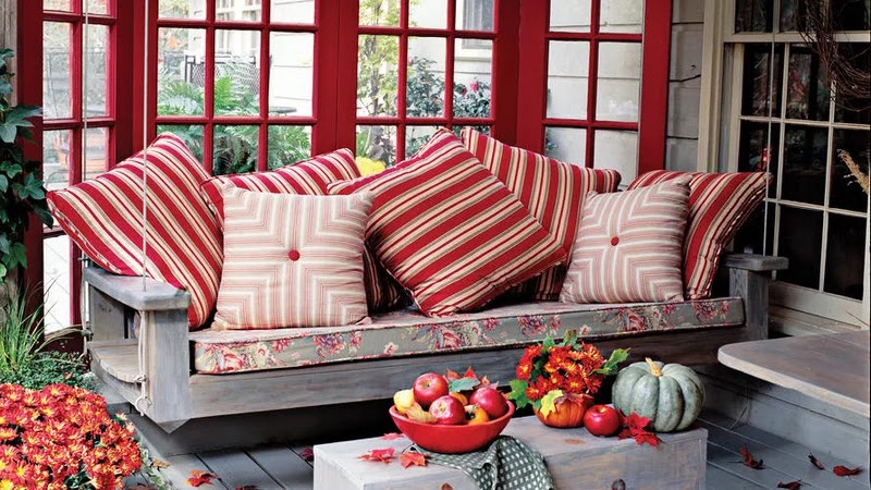 Spruce up your outdoor space by filling the seats with pillows in autumnal hues.