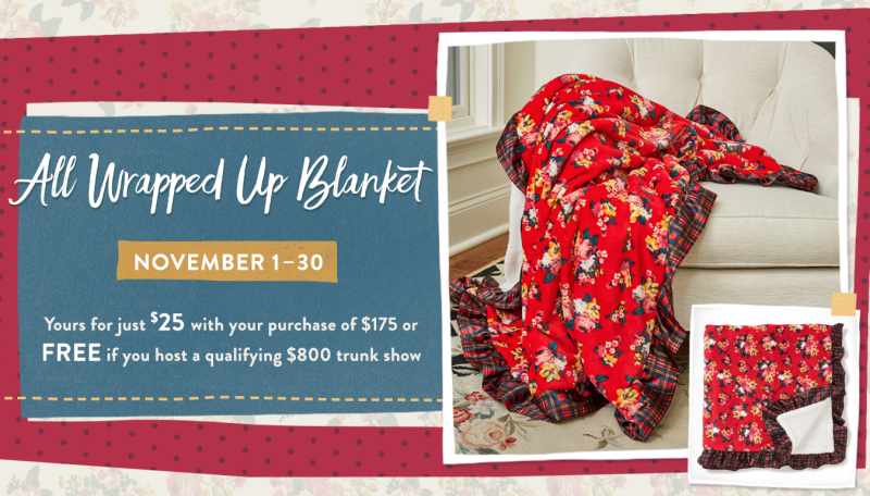 OMGosh, the November promo IS TO DIE FOR! This blanket ๐ Posted on October 30, 2018 by dkteel Share this: Share on X (Opens in new window) X Share on Facebook (Opens in new window) Facebook Like Loading... Related