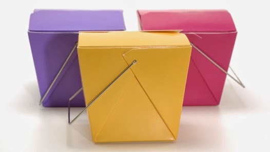 Printed Take-Out Boxes ~ They’re not just for leftovers anymore! Printed take-out containers work great for holding little gifts—especially those last-minute ones—since they’re cheap, recyclable and require little skill to assemble.