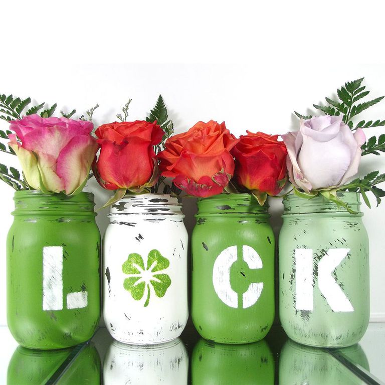 Store flowers, utensils, or photo booth props in these painted mason jars that pay homage to your roots — or the roots of St. Patrick, at least.