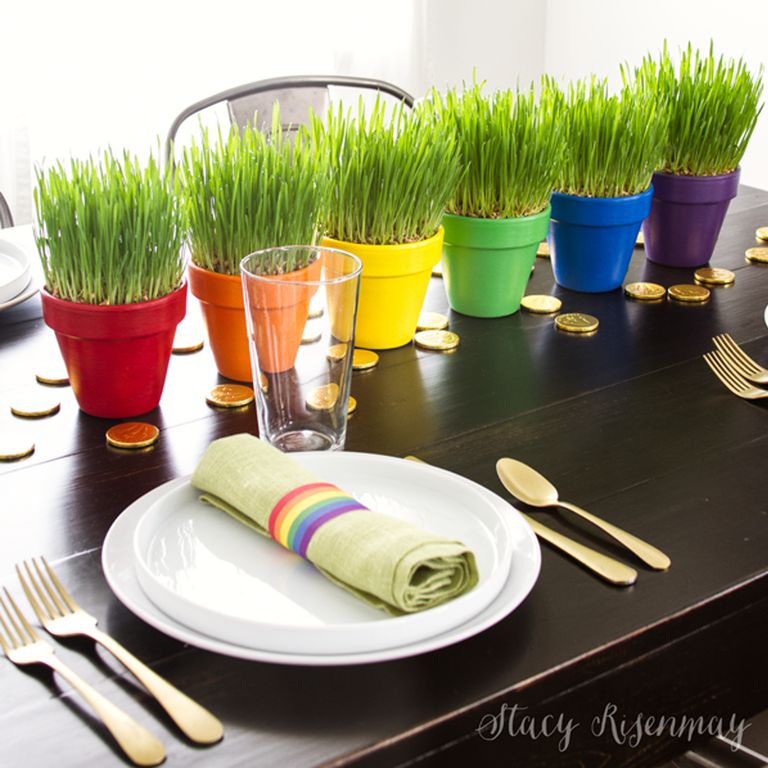 As if your dinner of corned beef and cabbage wasn’t festive enough, add these rainbow pots to your table for extra St. Paddy’s cheer. ~ Get the tutorial at Stacy Risenmay