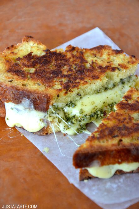 Irish Soda Bread Grilled Cheese ~ Speaking of St. Paddy’s sandwich goals, we present soda bread grilled cheese with a wee bit of pesto to give it a green tinge. Get the recipe from Just a Taste