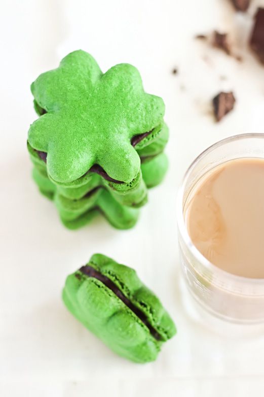 Shamrock Macarons ~ You better believe there’s Bailey’s chocolate ganache in these sandwich cookies. Get the recipe from Raspberry Cupcakes