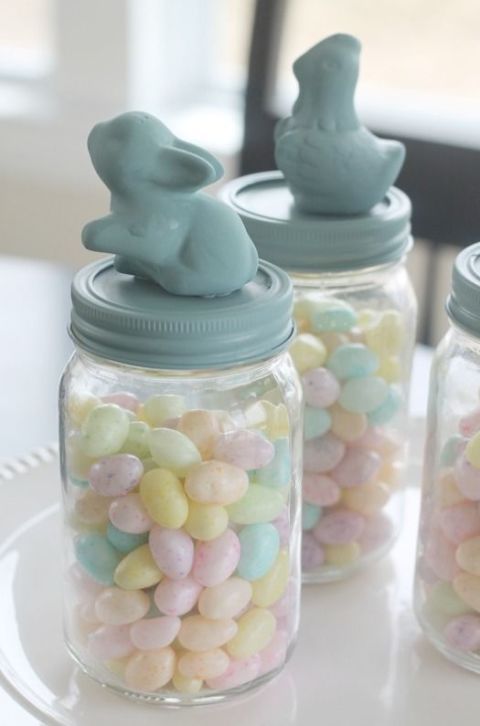 These gorgeous candy containers were created using Mason jars and ceramic figures from the dollar store. Get the tutorial at the Passionate Penny Pincher.