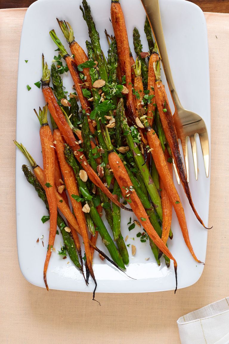 Roasted Carrots and Asparagus with Almond Gremolata Eating your veggies has never been this flavorful. Get the recipe.