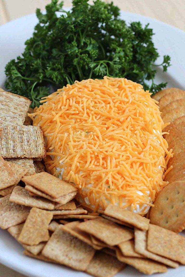 Easter Carrot Cheese Ball Topped with a bundle of parsley, this cheesy appetizer is also a fun Easter decoration for your dinner table. Get the recipe at Yummy Healthy Easy.