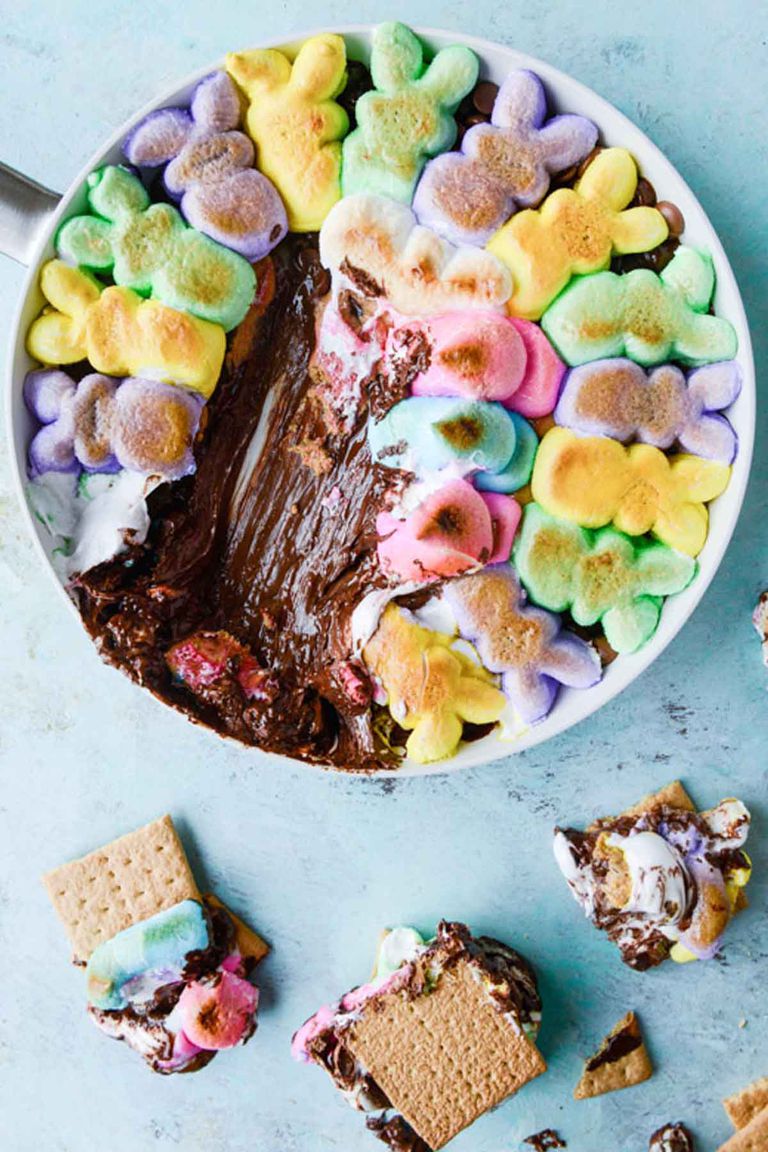 Chocolate Peanut Butter Peeps Skillet S’mores If you thought s’mores were good, just wait until you try this Easter-themed version. Get the recipe at How Sweet Eats.